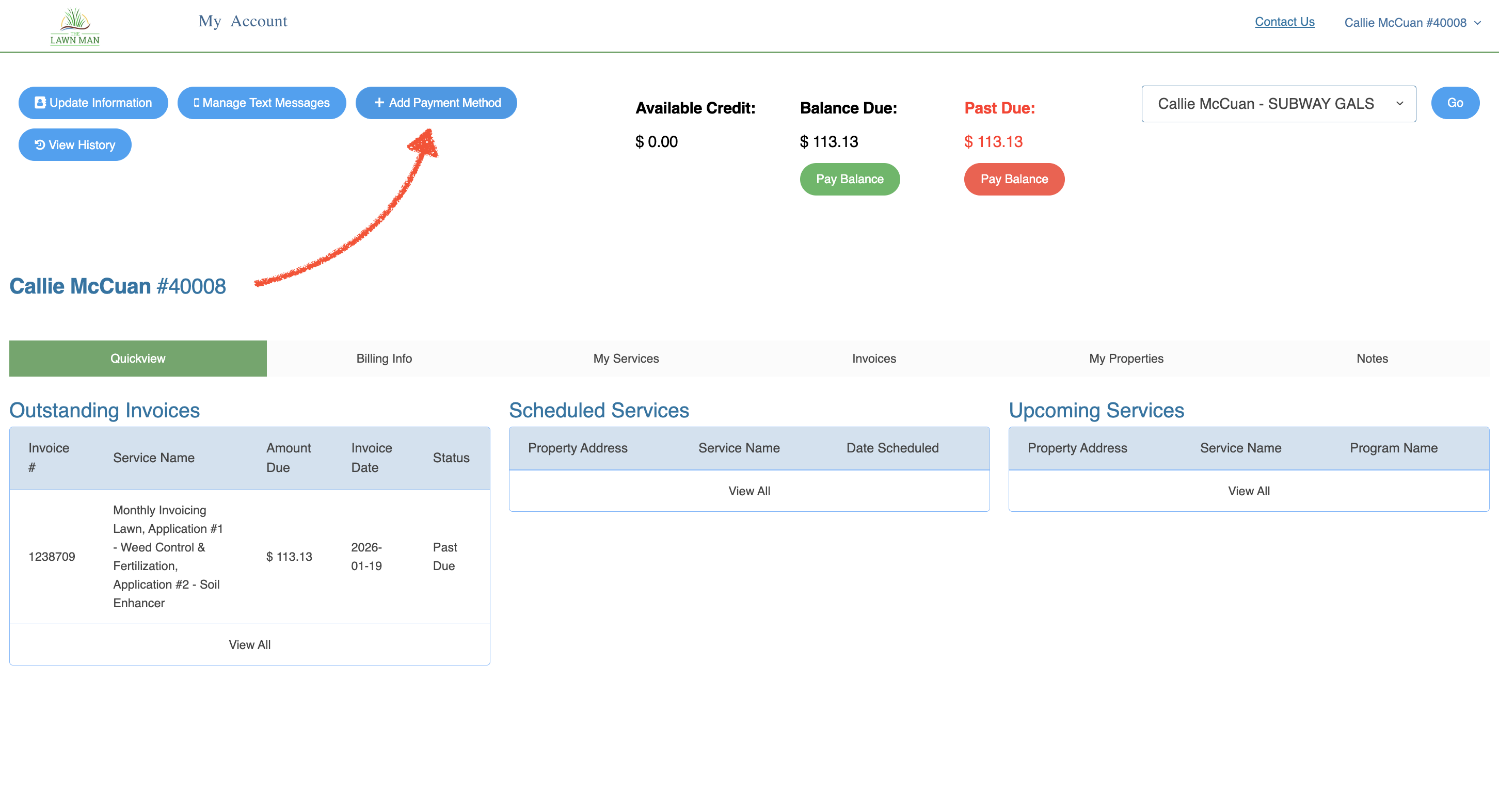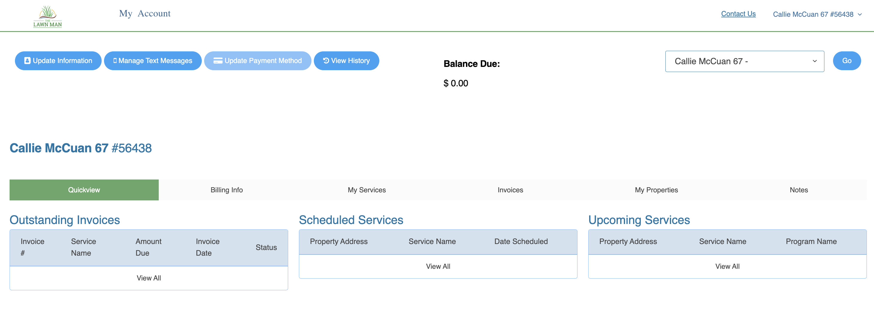 We are now offering a new Customer Portal for your convenience that will allow you to access your account with us at any time. You will now be able to log in online and view your upcoming or past services, view and pay invoices, sign up for text alerts and more.