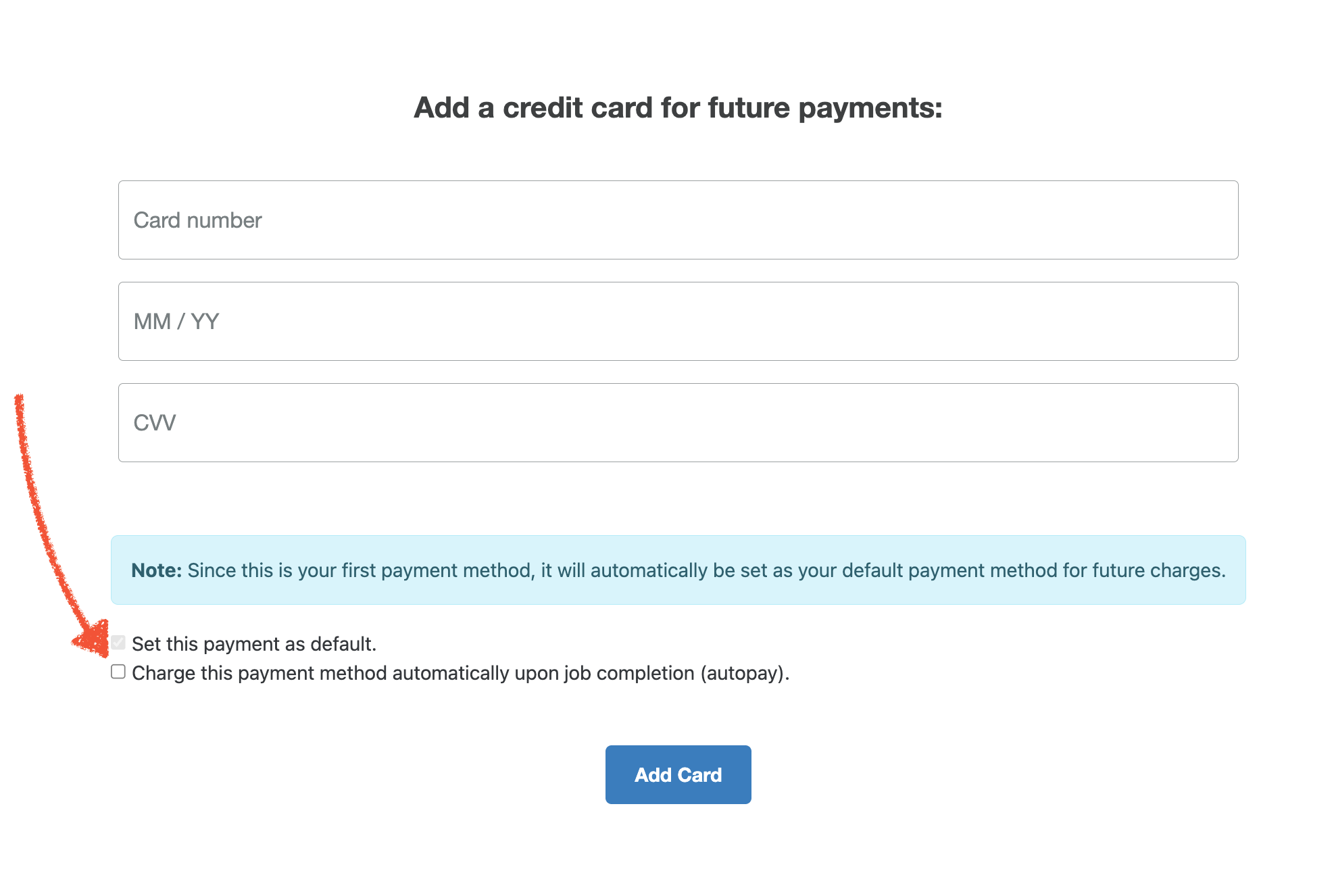 Check the box next to "Charge this payment method automatically upon job completion (autopay)."