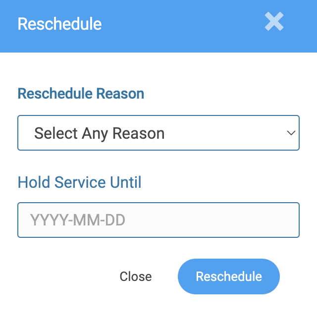 When you reschedule a service in Spraye, you'll see the "Hold Until" option in the box that pops up. You may choose a date in the dropdown menu which will put that service on hold until the specified date. This means no users will be able to reschedule the service until said date.