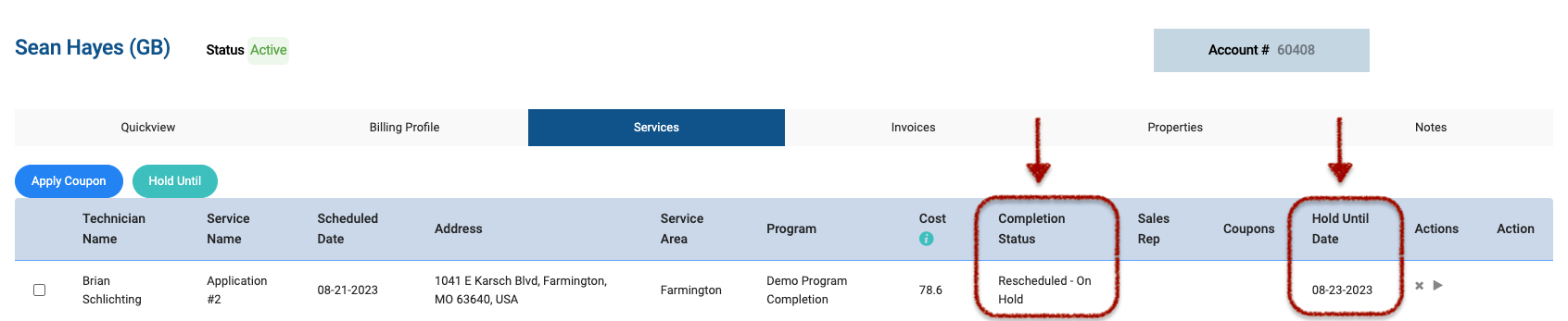 In addition to rescheduling your services, Spraye gives you even more control over when those services are able to be rescheduled. We offer a unique feature called "Hold Until" that allows you to hold lawn services in the event of a sod installation but still perform your tree and shrub or pest control services. You will see this option pop up when rescheduling services in the tech and admin views. However, you can also access this feature from a customer's profile on the Services tab.