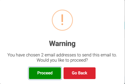 - Once you’ve completed your search and selected the desired customers, click Send Email to List to begin preparing your email. A warning message will appear showing the number of selected customers. From there, you can choose Proceed to continue or Go Back to return and adjust your selection.