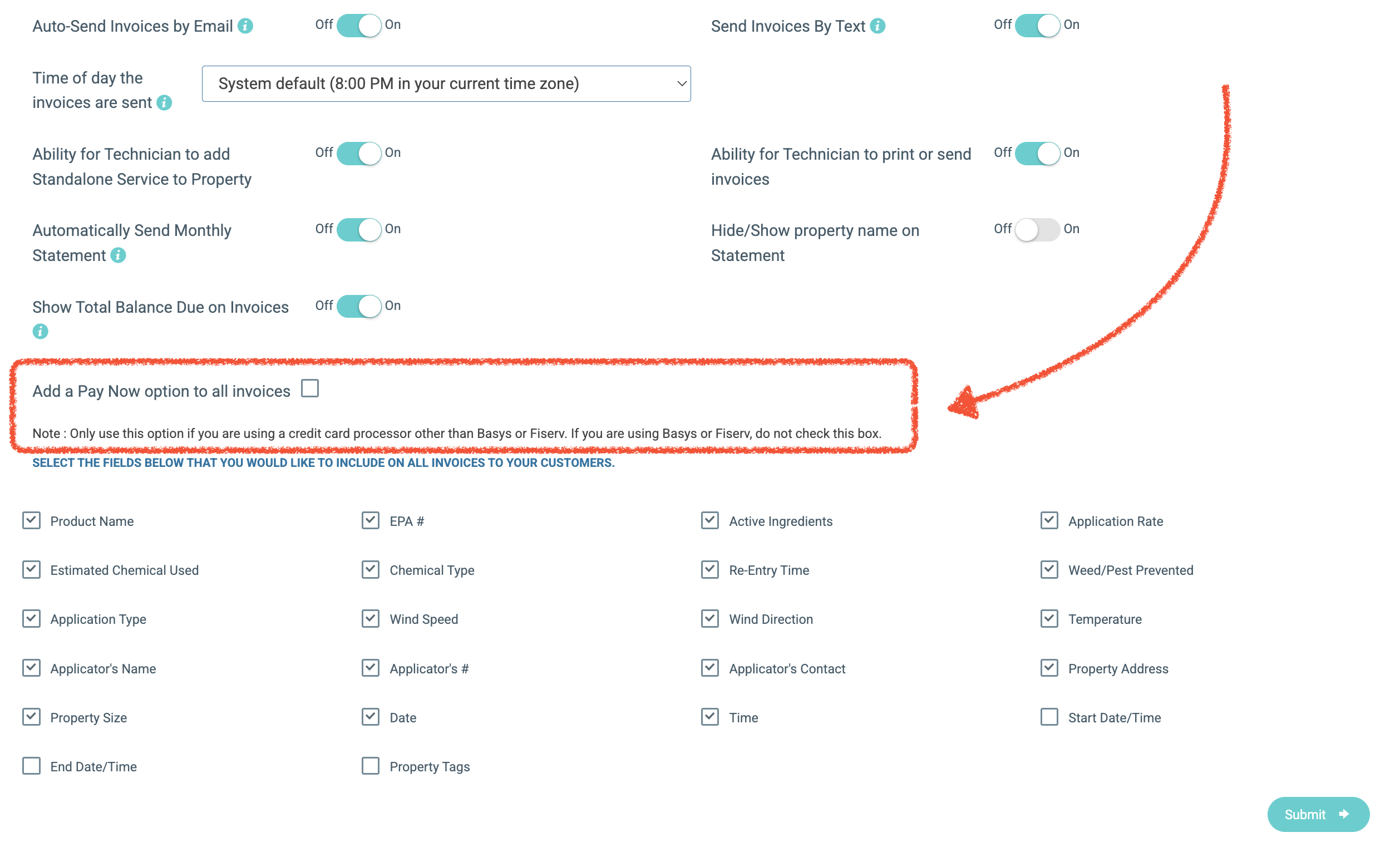 - Check the box next to "Add a Pay Now option to all invoices."